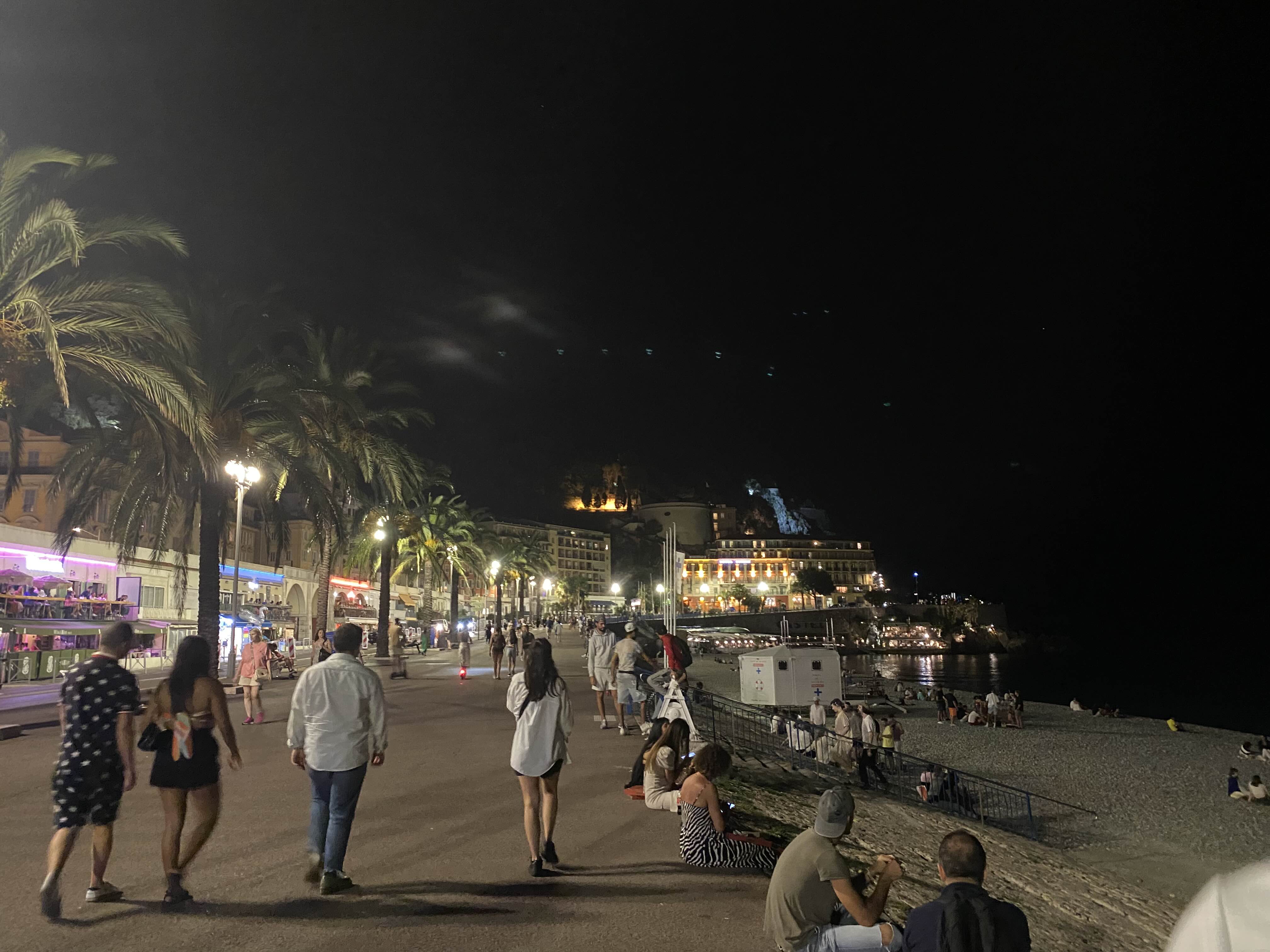 밤에도 북적북적한 해변가. 클럽음악도 들리고, 니스는 밤도 매력적이었다.