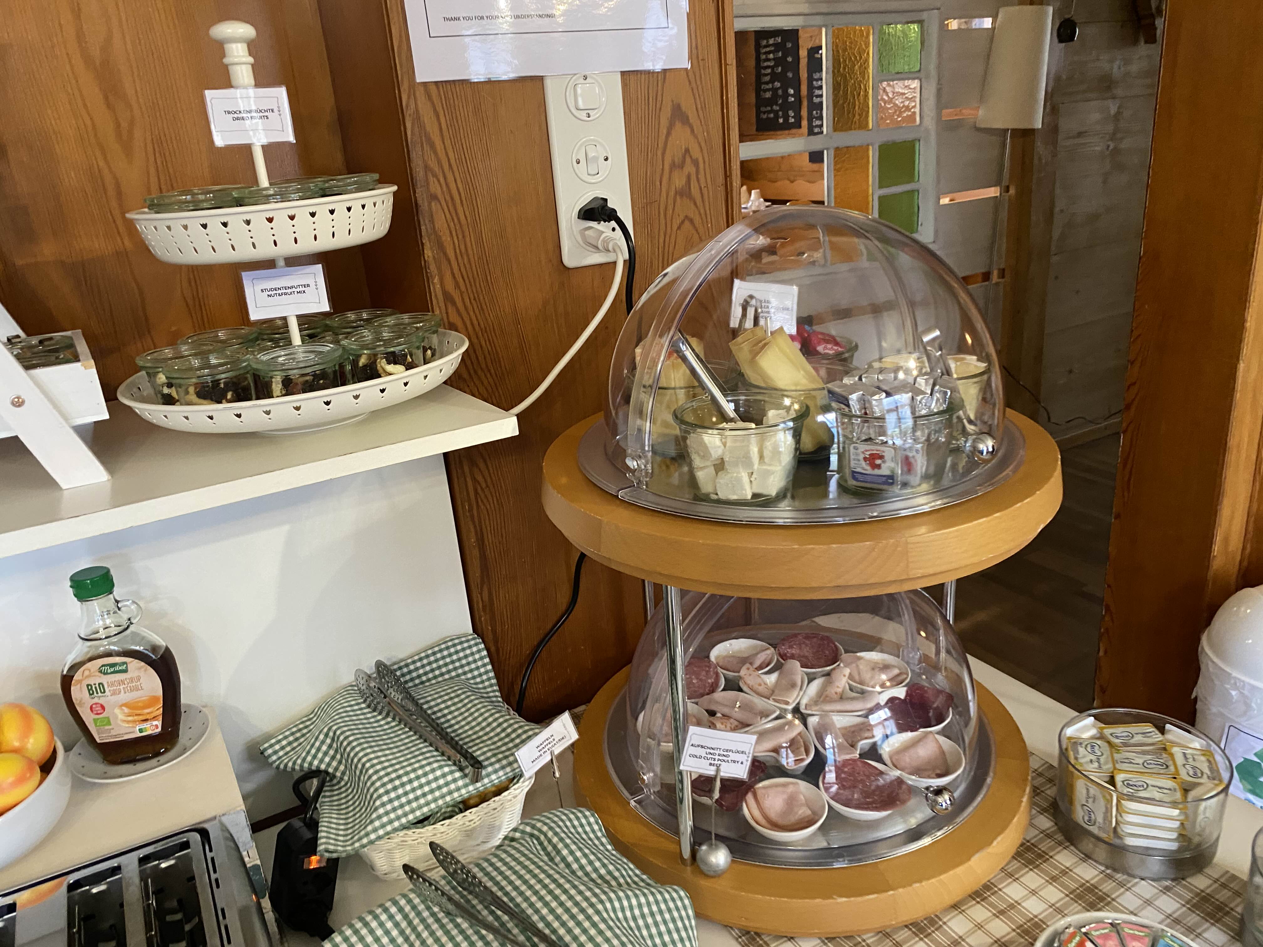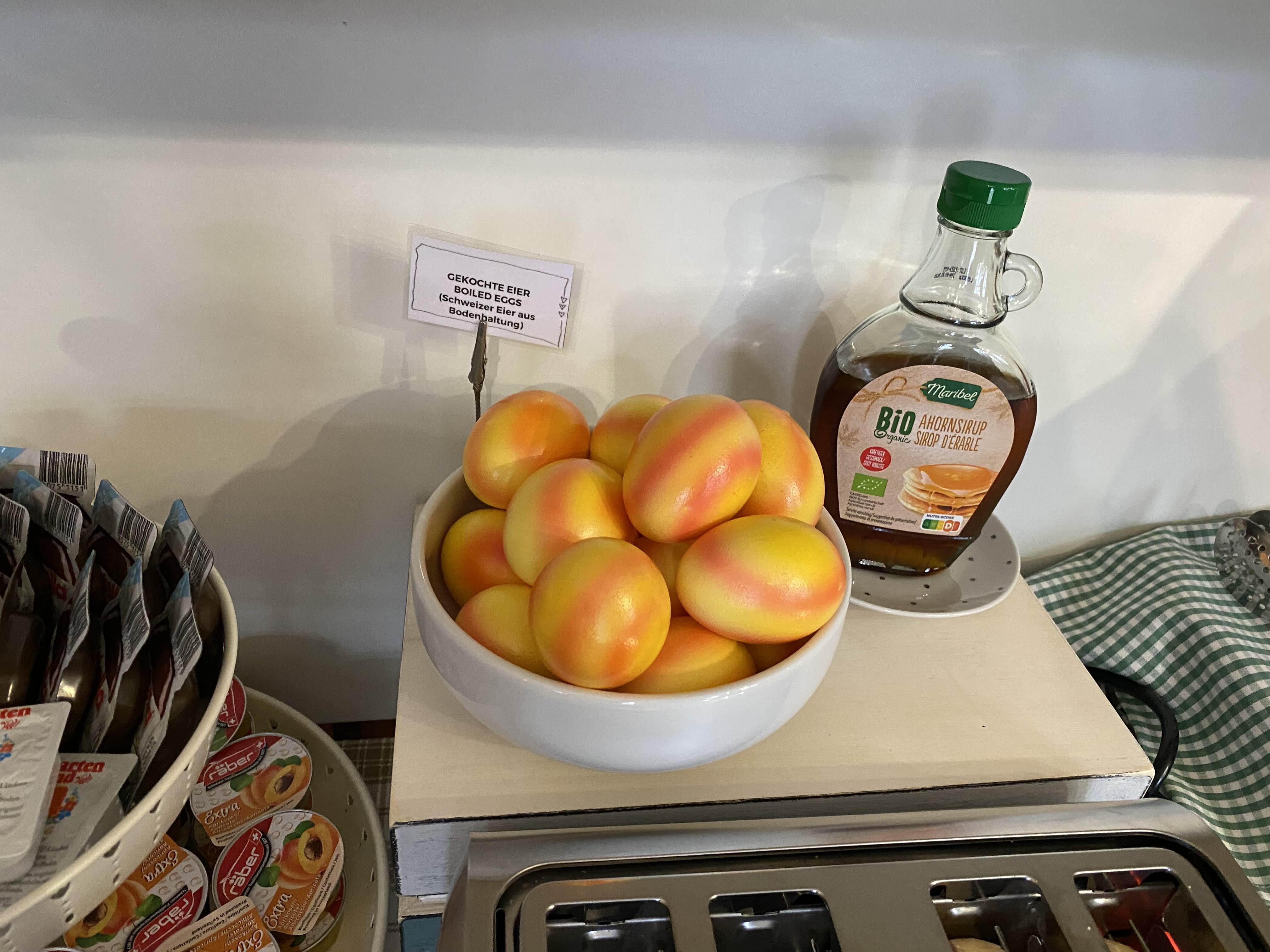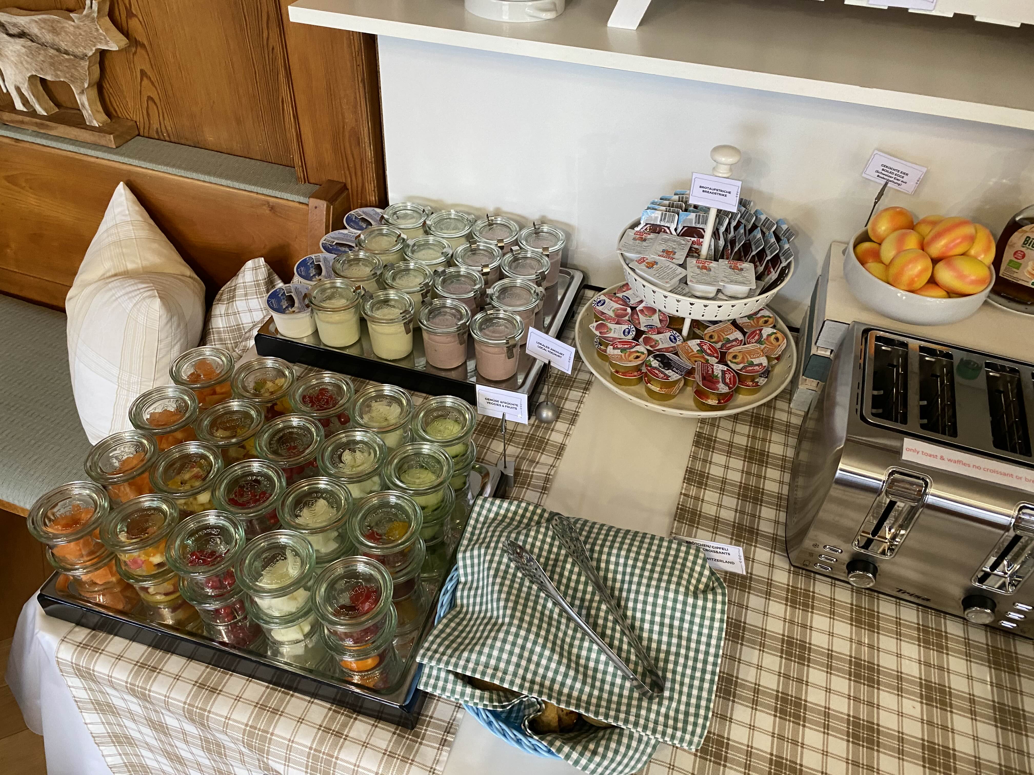 주부로서 전혀 이해가 안되는데, 조그마한 양념통 같은 데에 조식 메뉴들을 소분해 놓았다. 하나하나 골라서 가져와 먹었는데, 테이블에 계속 쌓이는 통들과 뚜껑들을 보며 '왜 굳이 설거지 거리를 만들지?'라는 생각이 계속해서 들었다. 전형적인 주부 마인드 ㅋ